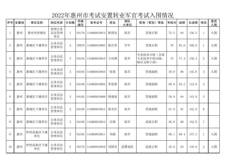 2022年惠州市考试安置转业军官考试入围情况.xlsx