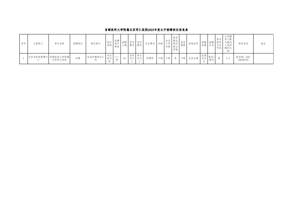 首都医科大学附属北京同仁医院2023年度公开招聘岗位信息表.xlsx