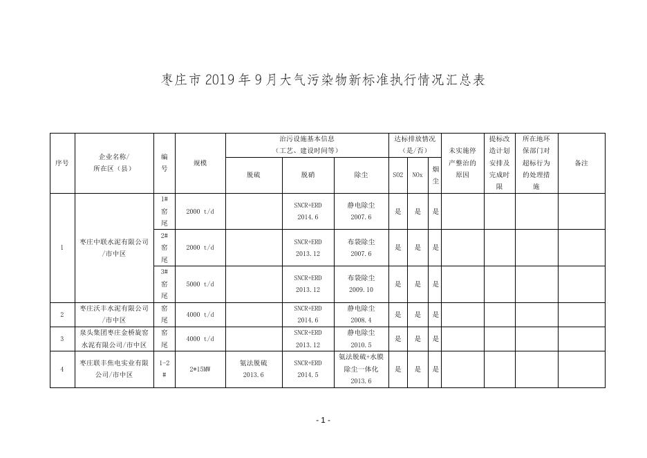 枣庄市2019年9月大气污染物新标准执行情况汇总表.doc
