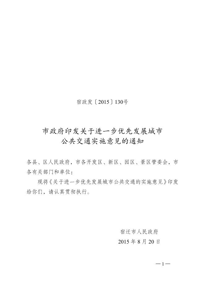 宿政发【2015】130号市政府关于印发进一步优先发展城市公共交通实施意见的通知(最新).doc.docx
