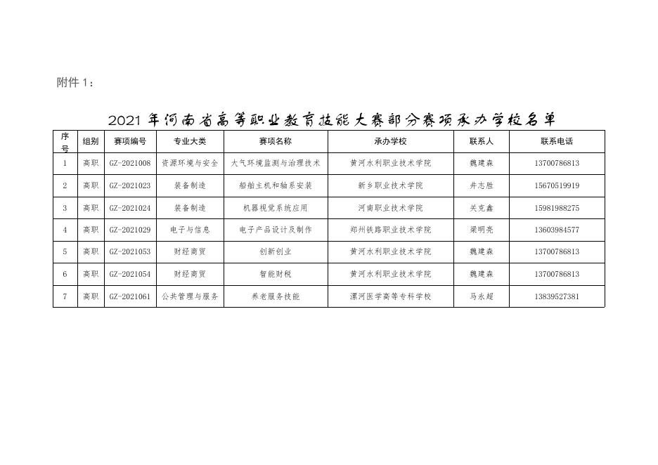 1.2021年河南省高等职业教育技能大赛部分赛项承办学校名单.pdf