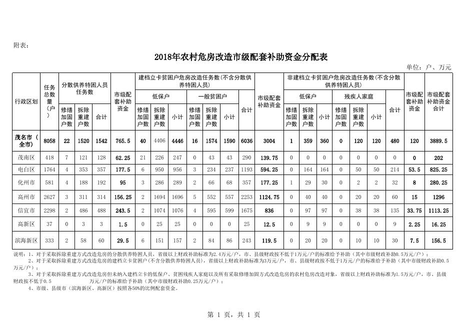 附表:2018年农村危房改造市级配套补助资金分配表.xls