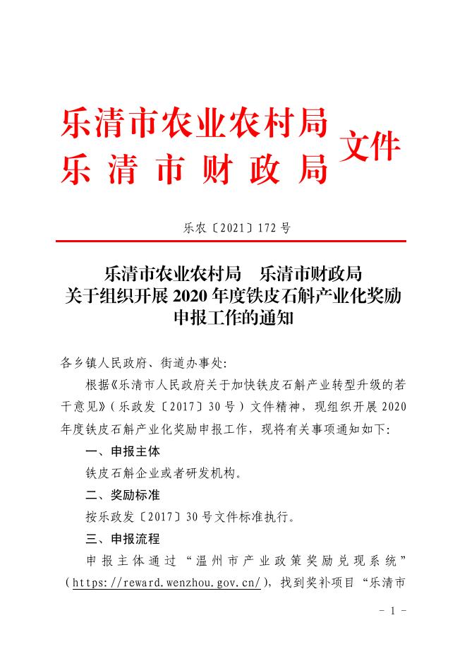 乐农〔2021〕172号关于组织开展2020年度铁皮石斛产业化奖励申报工作的通知-timevale-convert.pdf