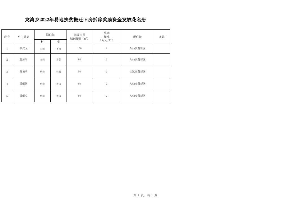 龙湾乡2022年易地扶贫搬迁旧房拆除奖励资金发放花名册.xlsx