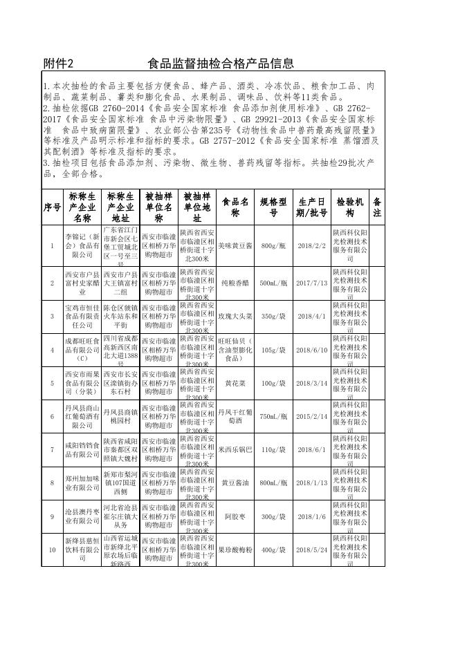 食品监督抽检合格产品信息.xls