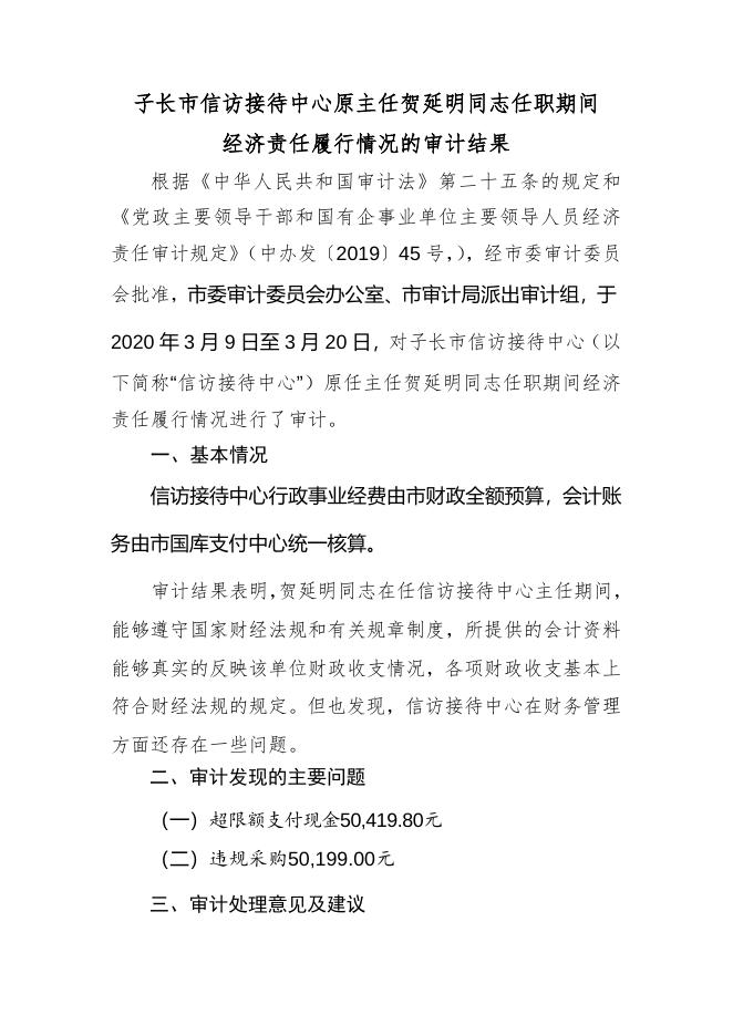 10.子长市信访接待中心原主任贺延明同志任职期间经济责任履行情况的审计结果.doc