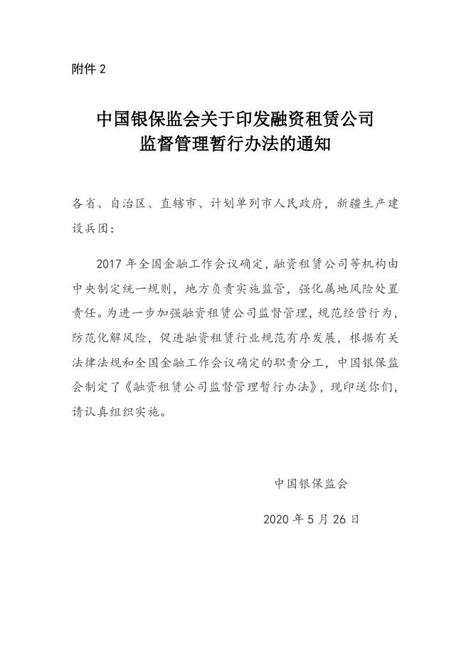 中国银保监会关于印发融资租赁公司监督管理暂行办法的通知.docx