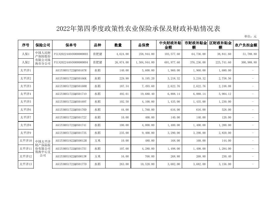 附件:2022年第四季度政策性农业保险承保及财政补贴情况表.xls
