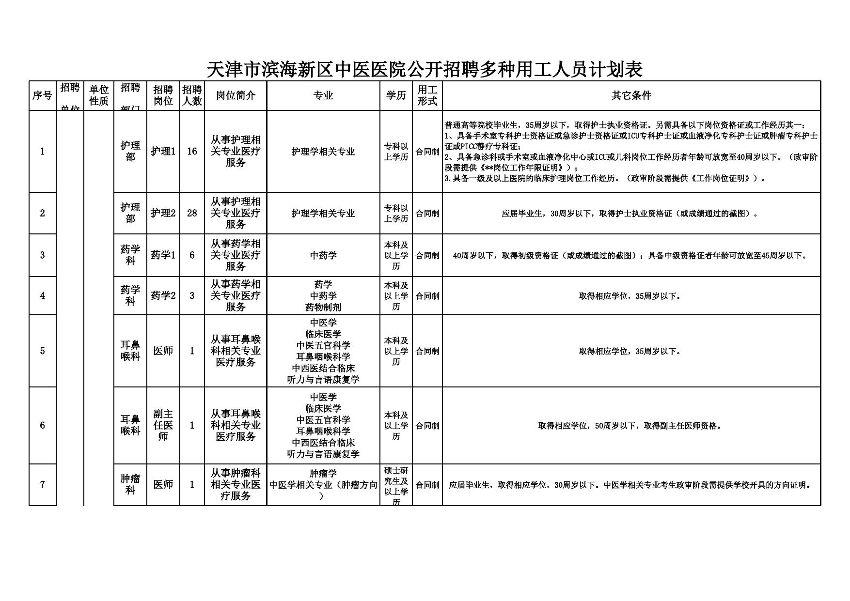 天津市滨海新区中医医院公开招聘多种用工人员计划表.xlsx