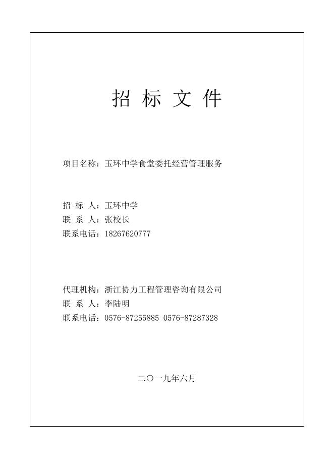 玉环中学食堂委托经营管理服务招标文件(定稿)2019.6.18.doc