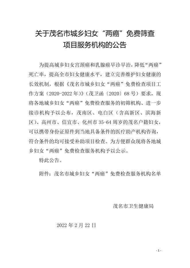 茂名市城乡妇女“两癌”免费检查服务机构名单.doc
