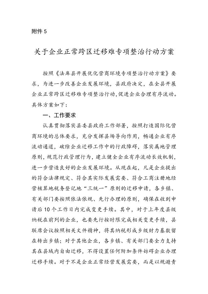 5、关于企业正常跨区迁移难专项整治行动方案.doc
