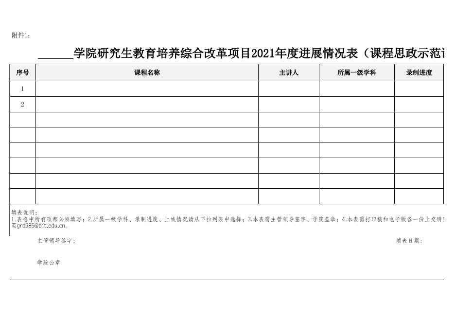附件1:研究生教育培养综合改革项目2021年度进展情况表(课程思政示范课).xlsx