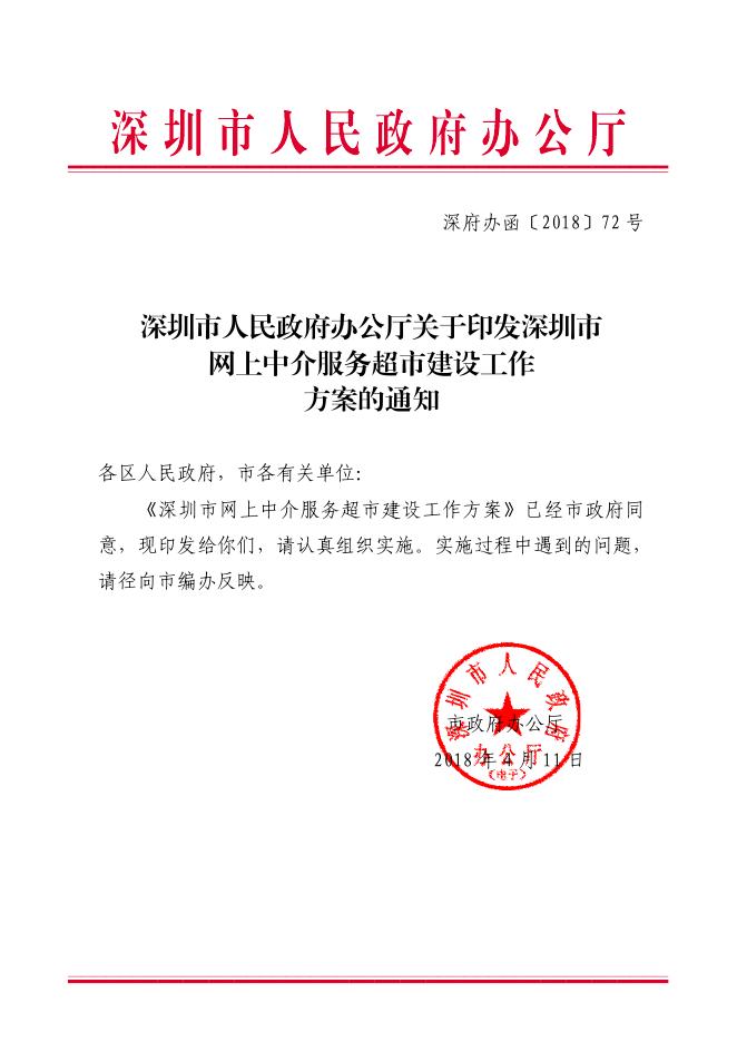 深圳市人民政府办公厅关于印发深圳市网上中介服务超市建设工作方案的通知.pdf