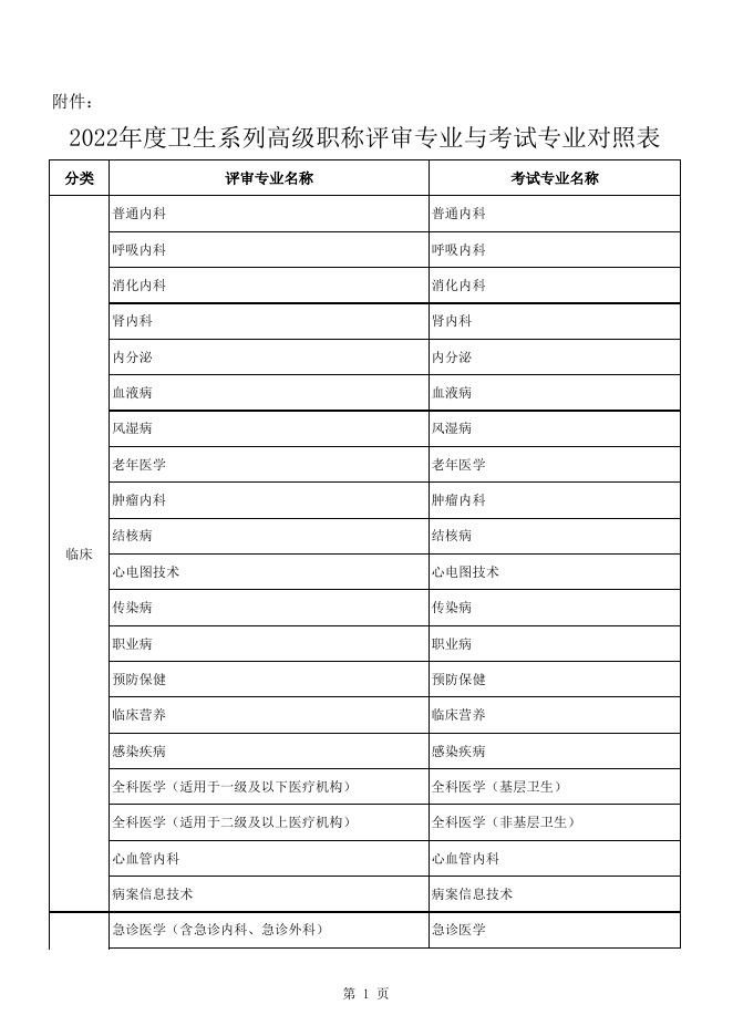 附件:2022年度卫生系列高级职称评审专业与考试专业对照表.xlsx