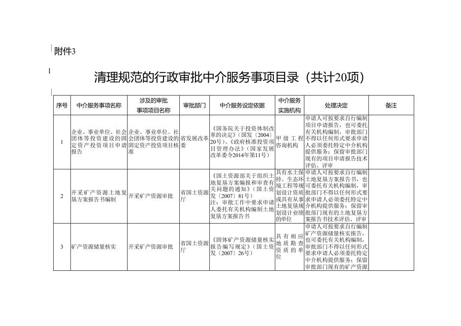 清理规范的行政审批中介服务事项目录(共计20项).doc