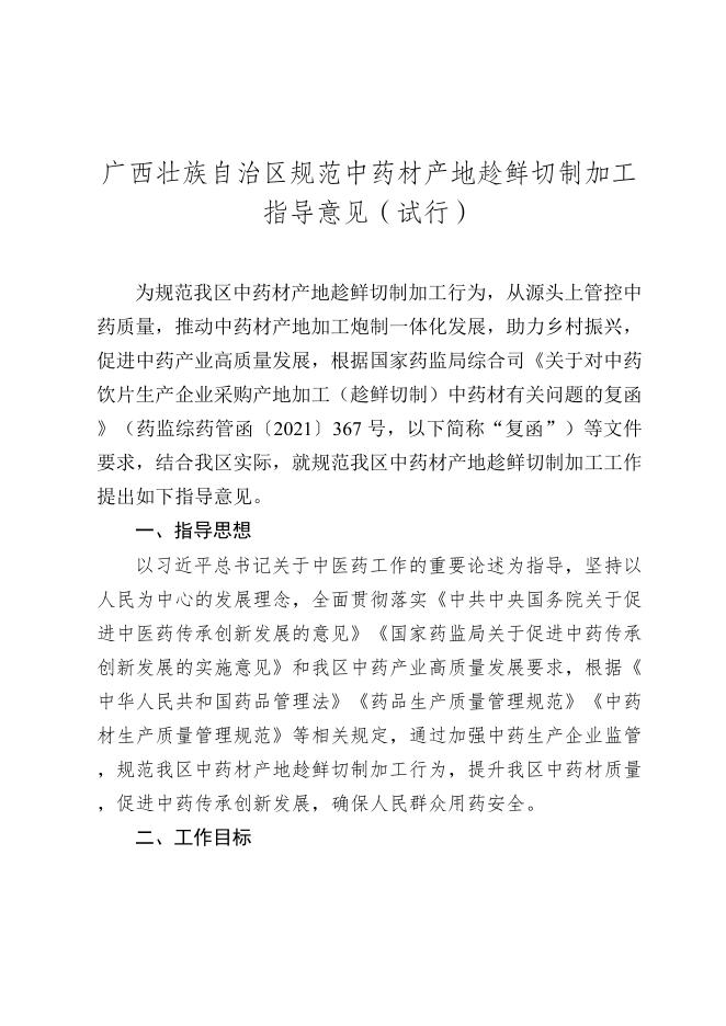 广西壮族自治区规范中药材产地趁鲜切制加工指导意见(试行).docx