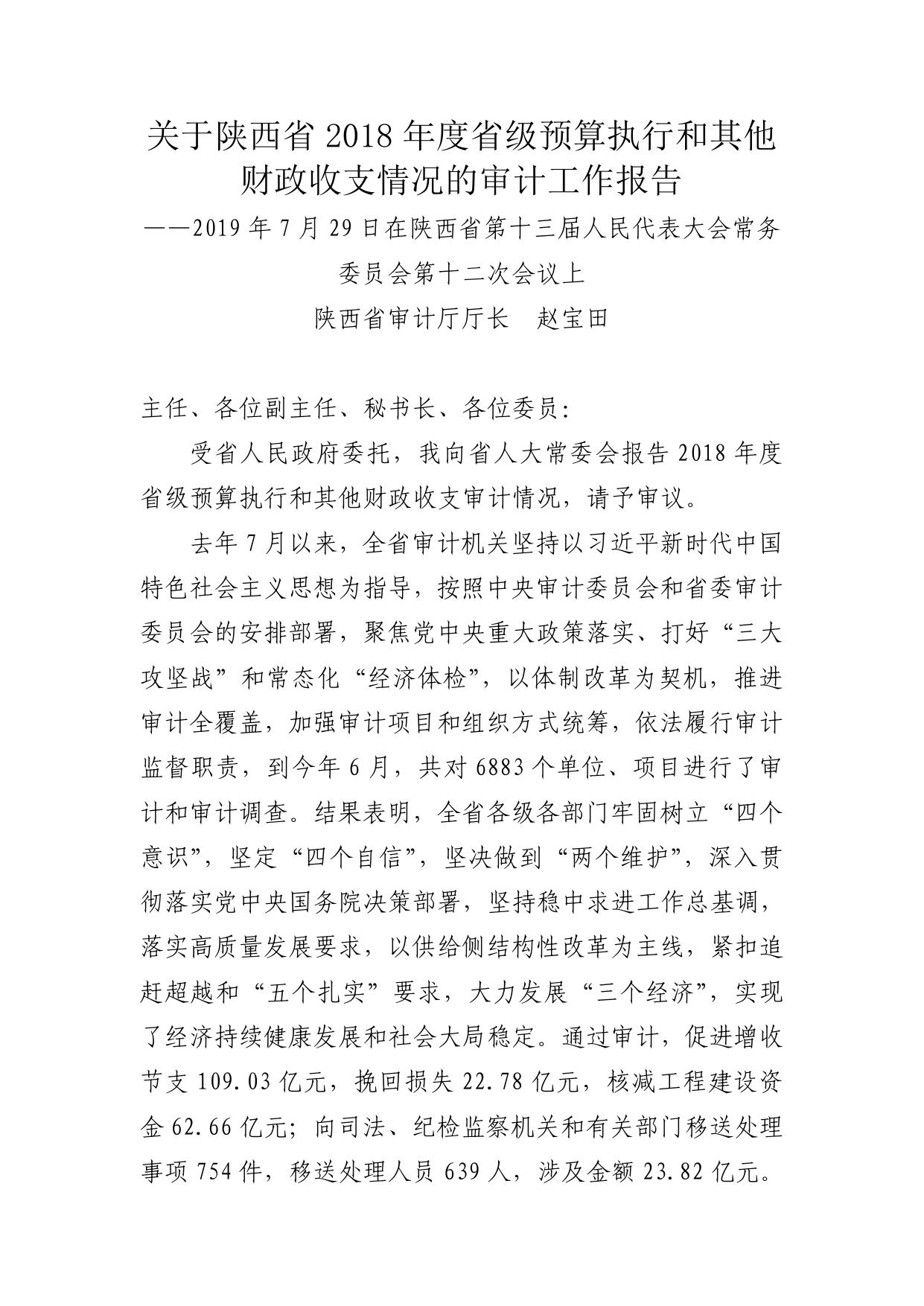 关于陕西省2018年度省级预算执行和其他财政收支情况的审计工作报告.pdf