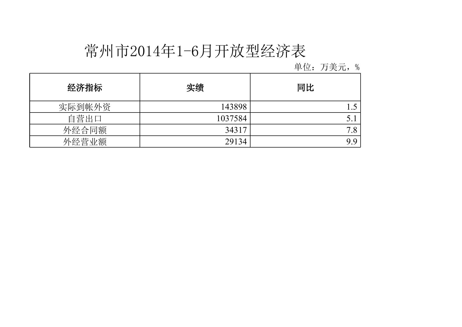 常州市2014年1-6月开放型经济表.xls