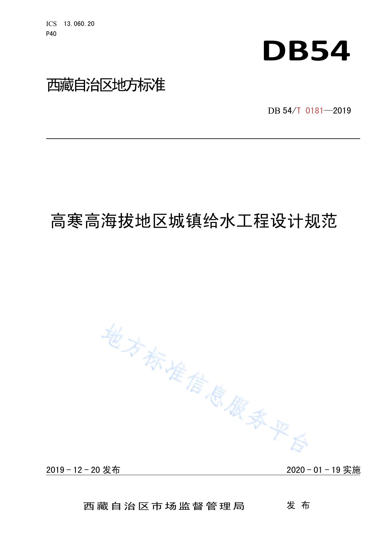 高寒高海拔地区城镇给水工程设计规范