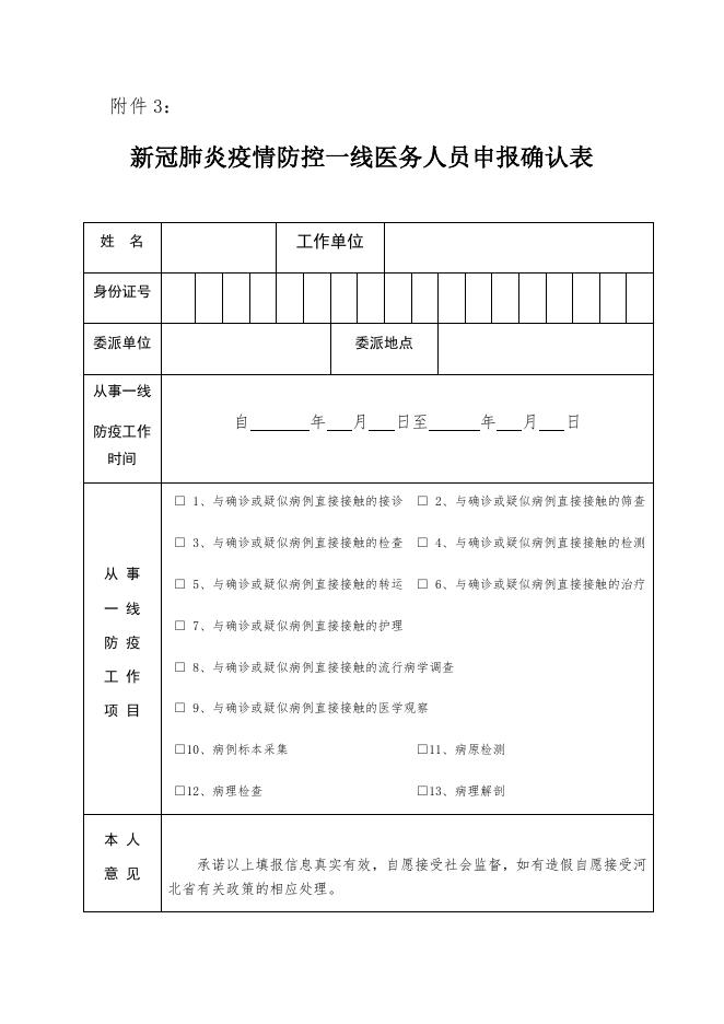 3、新冠肺炎疫情防控一线医务人员申报确认表.docx