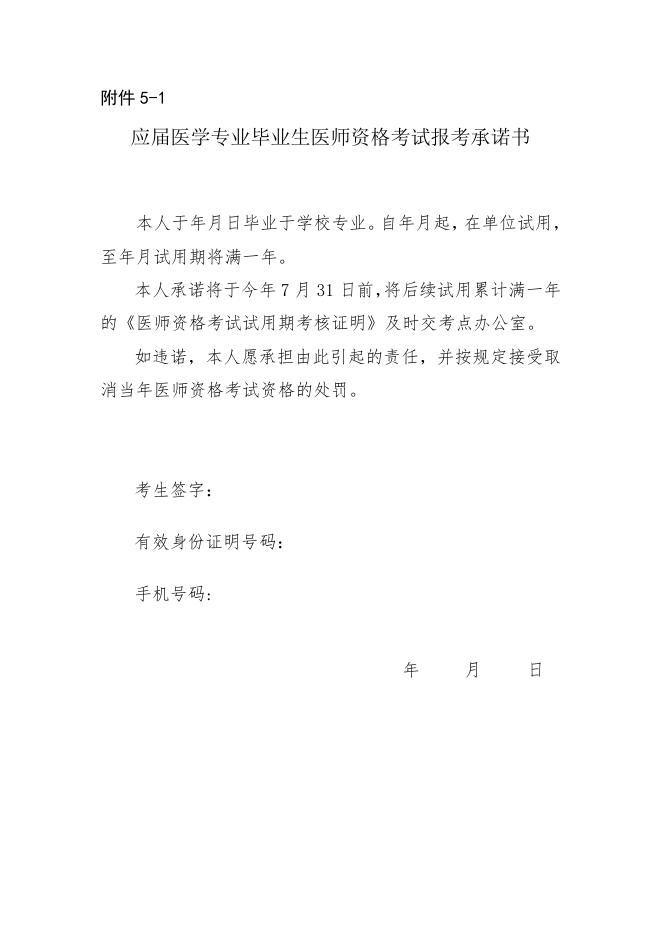 5、应届医学专业毕业生医师资格考试报考承诺书.docx