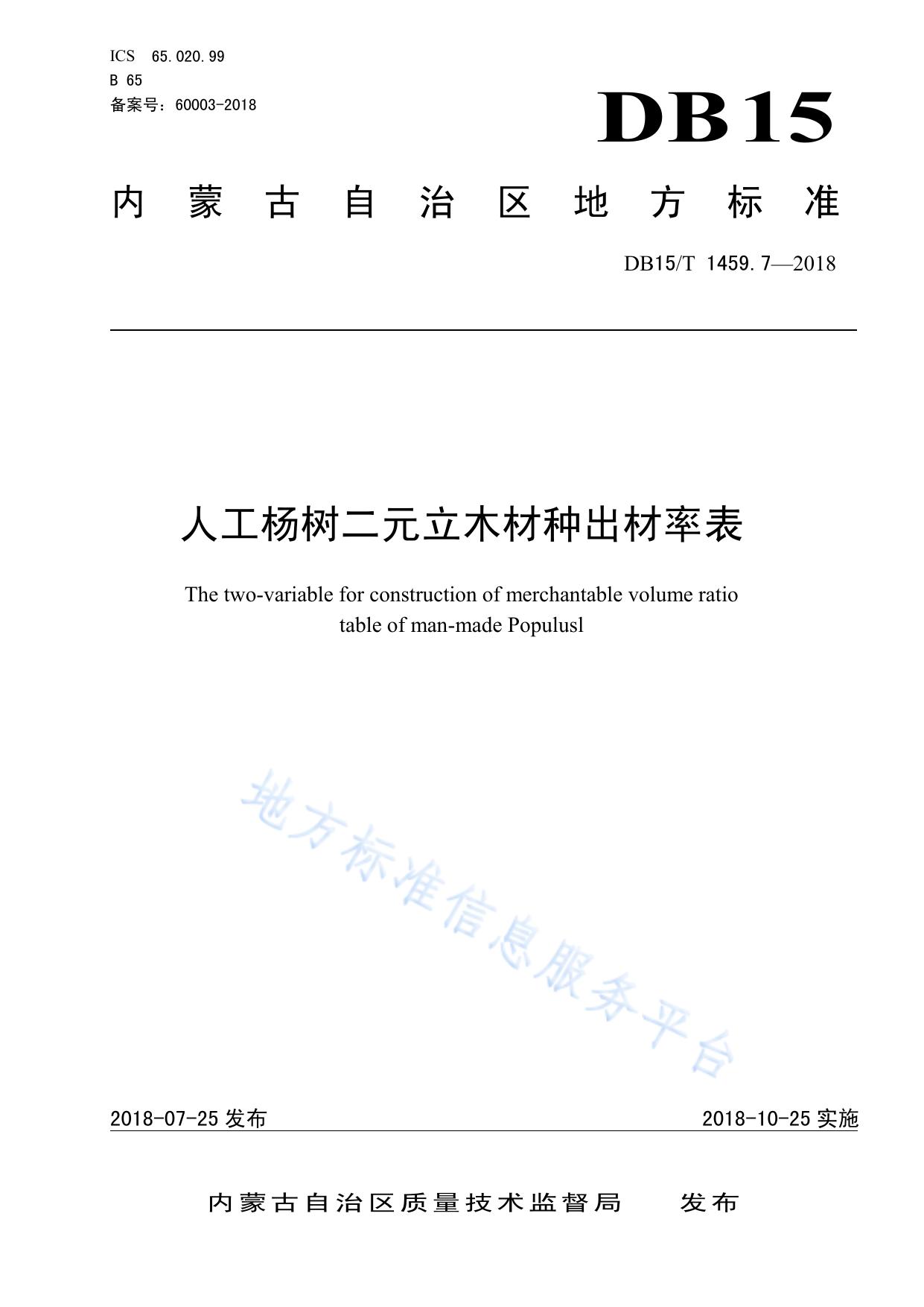 人工杨树二元立木材种出材率表