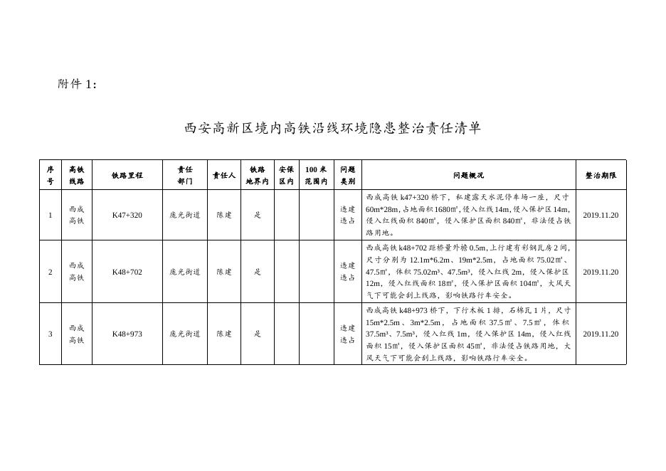 附件1、西安高新区境内高铁沿线环境隐患整治责任清单.docx