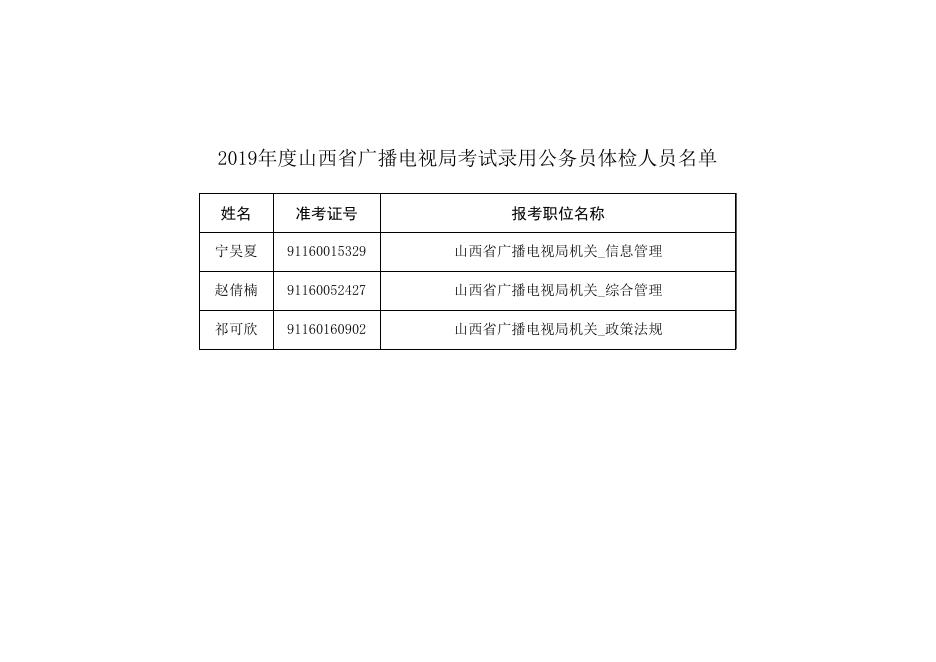 2019年度山西省广播电视局考试录用公务员体检人员名单.xls