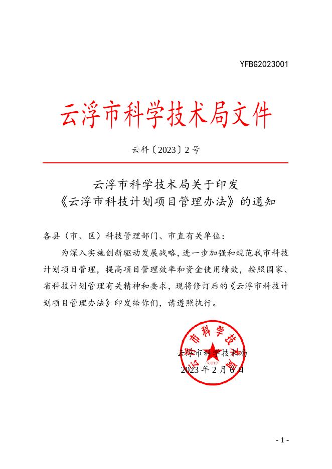 云浮市科学技术局关于印发《云浮市科技计划项目管理办法》的通知.doc