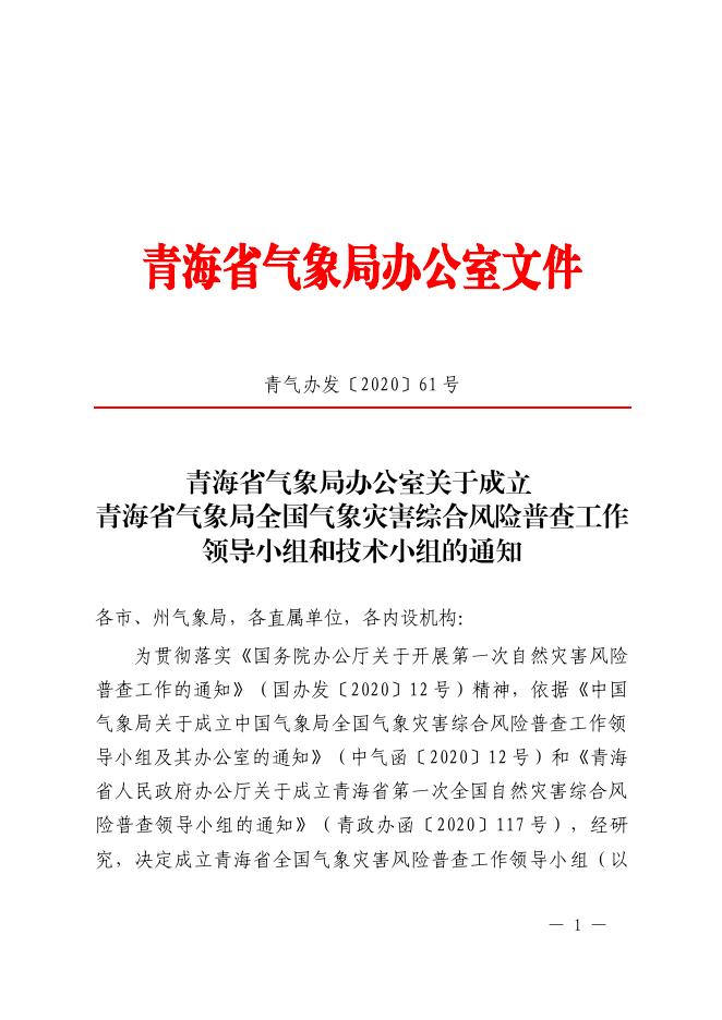 青海省气象局办公室关于成立 青海省气象局全国气象灾害综合风险普查工作领导小组和技术小组的通知.pdf