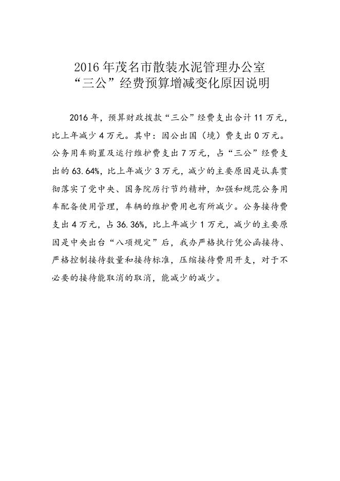 茂名市散装水泥管理办公室2016年“三公”经费预算增减变化原因说明.doc