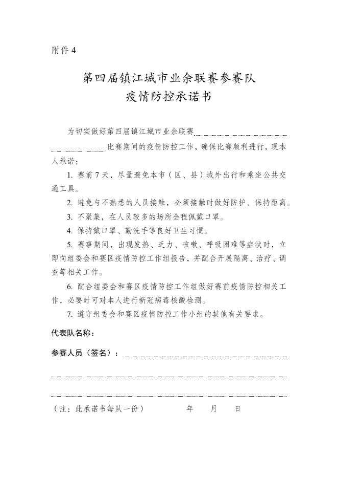 4. 第四届镇江城市业余联赛疫情防控承诺书.docx
