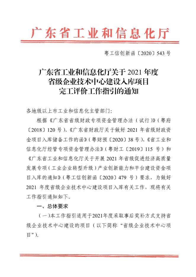 附件4:广东省工业和信息化厅关于2021年度省级企业技术中心建设入库项目完工评价工作指引的通知.pdf