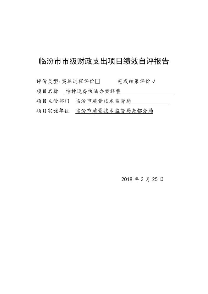 质监尧都分局财政支出项目绩效自评报告2017年.doc