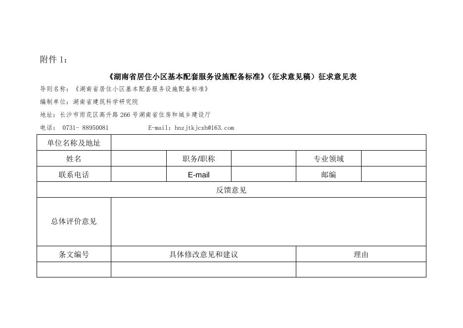 《湖南省居住小区基本配套服务设施配备标准》(征求意见稿)征求意见表.doc