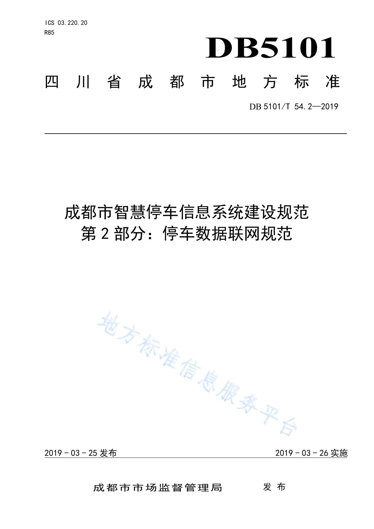 成都市智慧停车信息系统建设规范 第2部分:停车数据联网规范