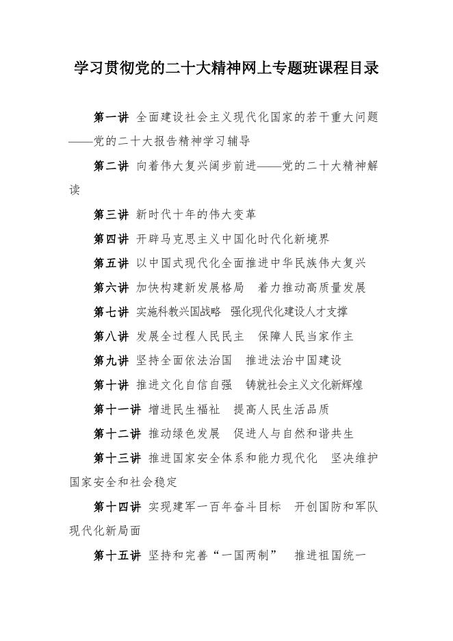 1.学习贯彻党的二十大精神网上专题班课程目录.docx