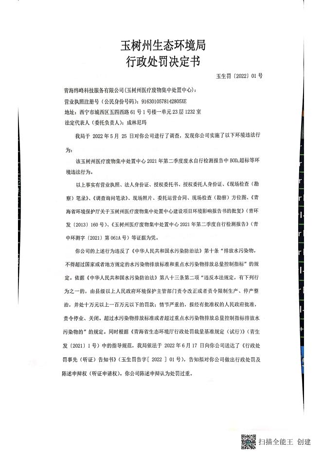玉树州生态环境局行政处罚决定书 玉生罚﹝2022﹞01号.pdf