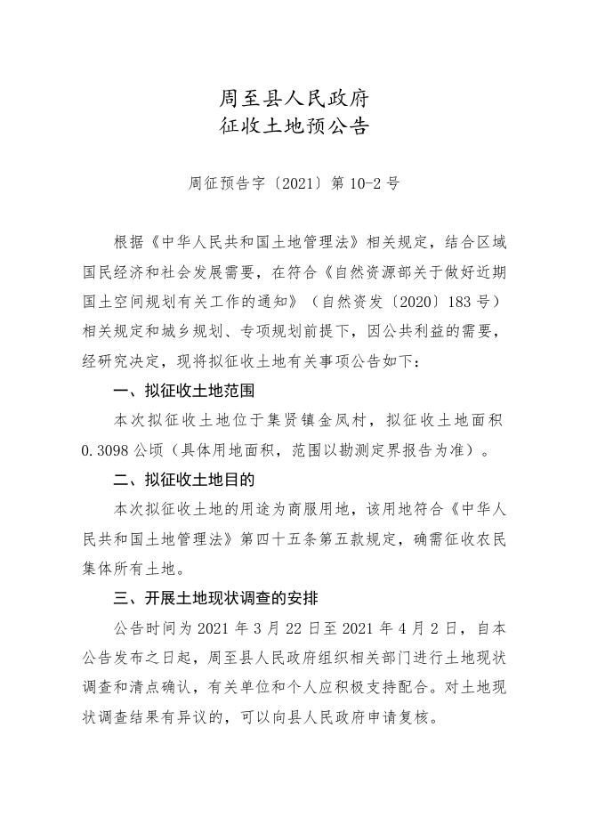 土地征收预公告(周征预告字〔2021〕第10-2号)——集贤镇金凤村.doc