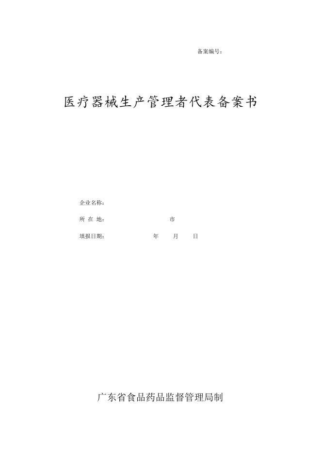 医疗器械生产管理者代表备案书.doc