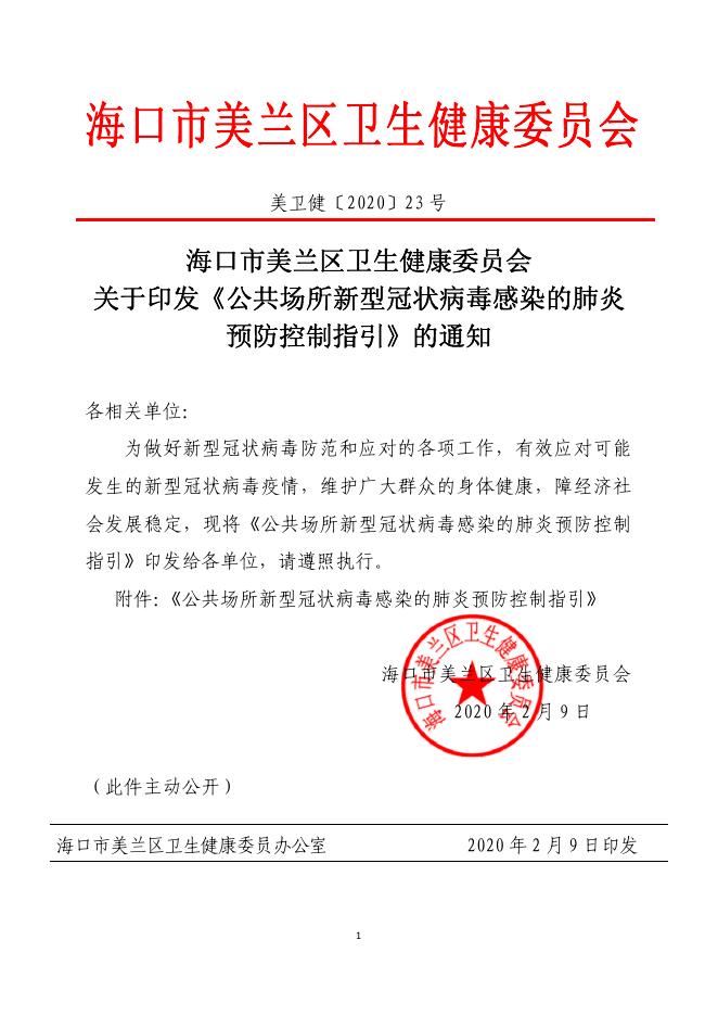 美卫健〔2020〕23号 关于印发《公共场所新型冠状病毒感染的肺炎预防控制指引》的通知.pdf