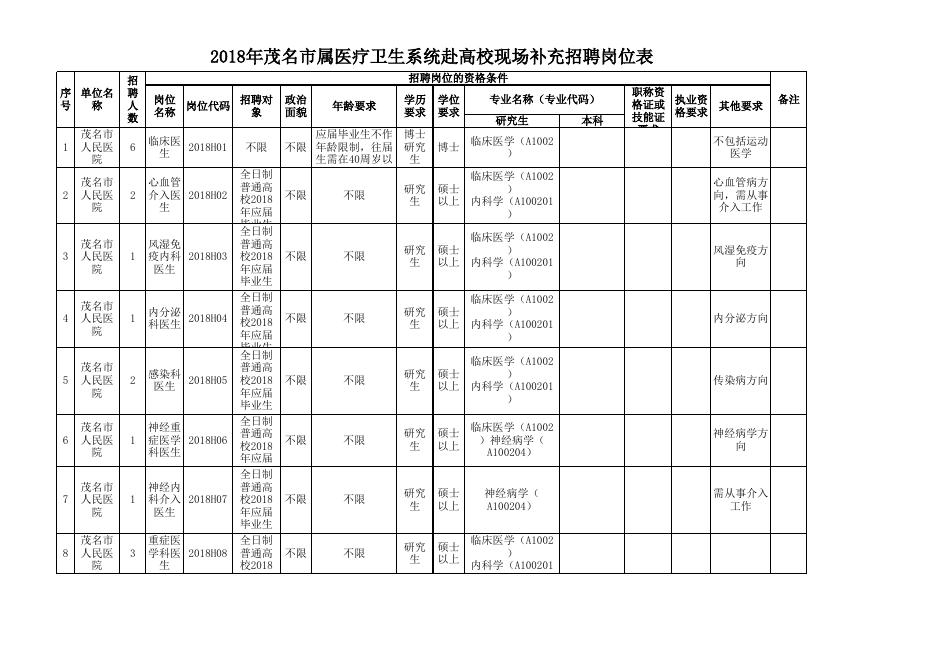 2018年茂名市属医疗卫生系统赴高校现场补充招聘岗位表.xls