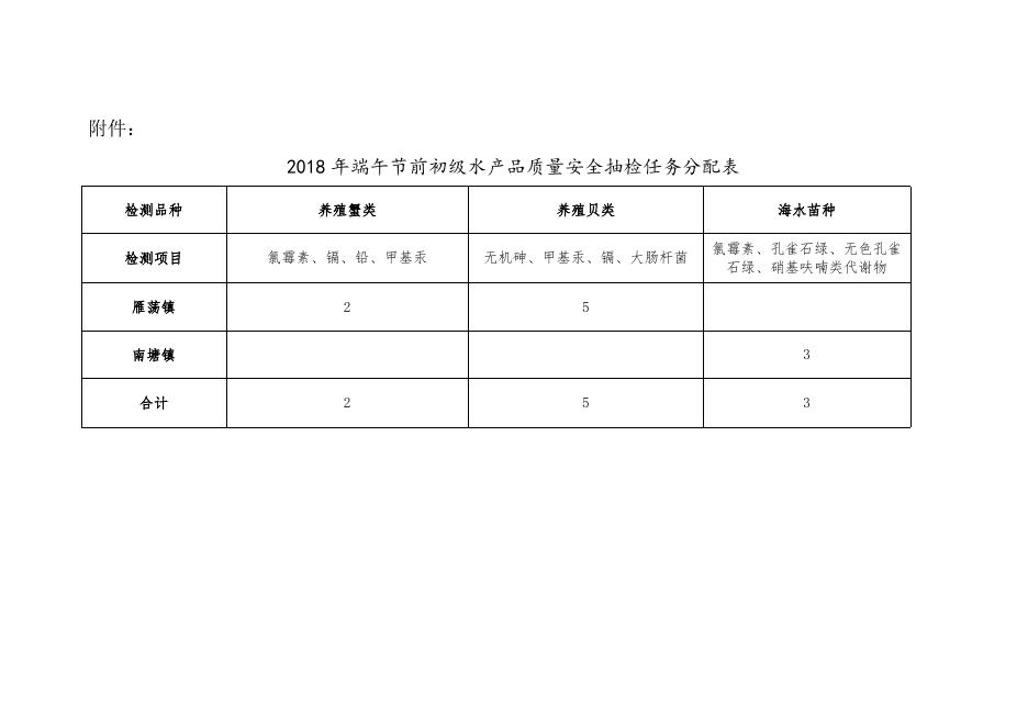 29号附件 2018年端午节前初级水产品质量安全抽检任务分配表.docx
