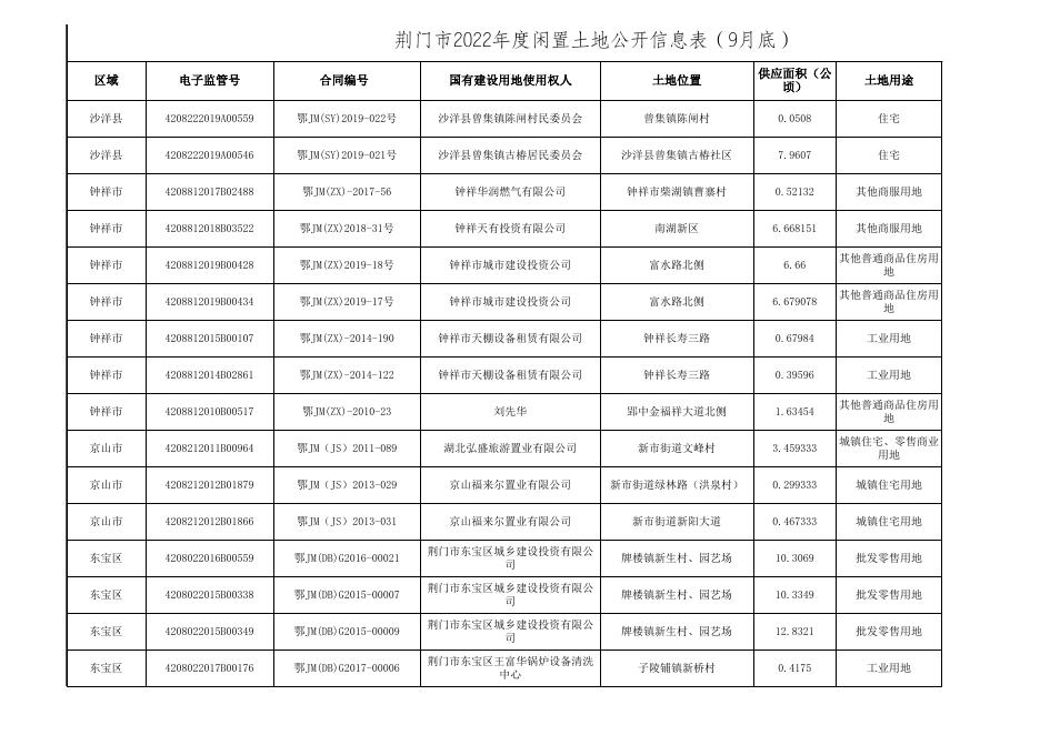 荆门市2022年度闲置土地公开信息表(9月底).xlsx