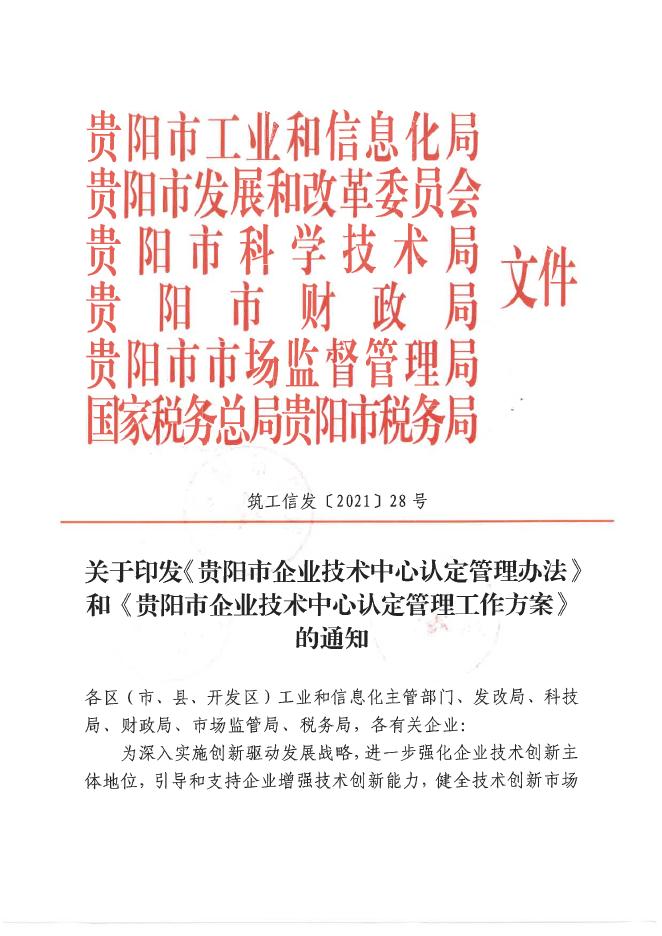 筑工信发〔2021〕28号关于印发《贵阳市企业技术中心认定管理办法》和《贵阳市企业技术中心认定管理工作方案》的通知.pdf