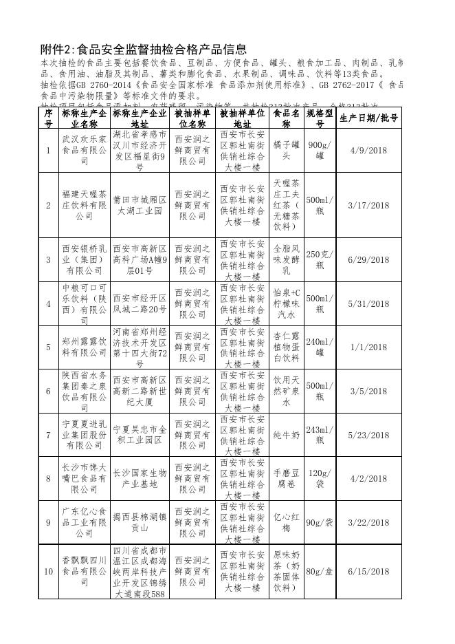 附件2:食品安全监督抽检合格产品信息.xlsx