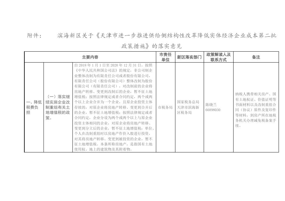 滨海新区关于对天津市进一步推进供给侧结构性改革降低实体经济企业成本第二批政策措施的落实意见.docx