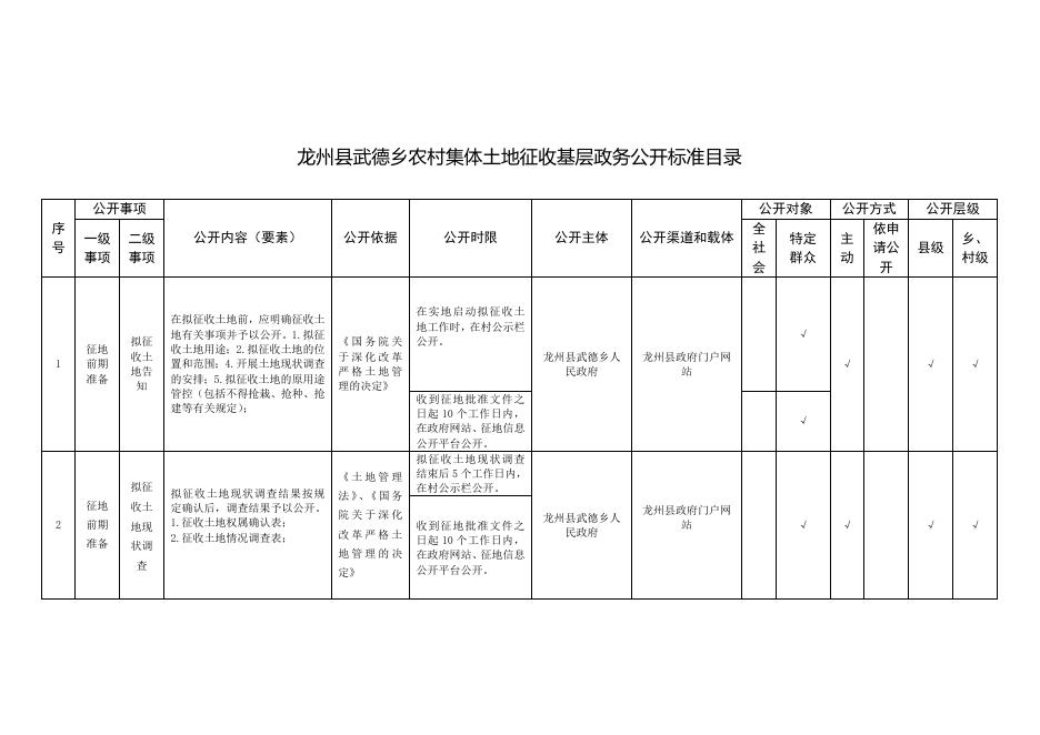 龙州县武德乡农村集体土地征收基层政务公开标准目录.doc