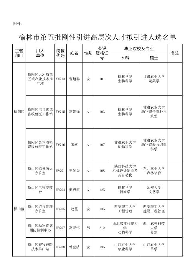 附件1榆林市第五批刚性引进高层次拟引进人选名单.xlsx